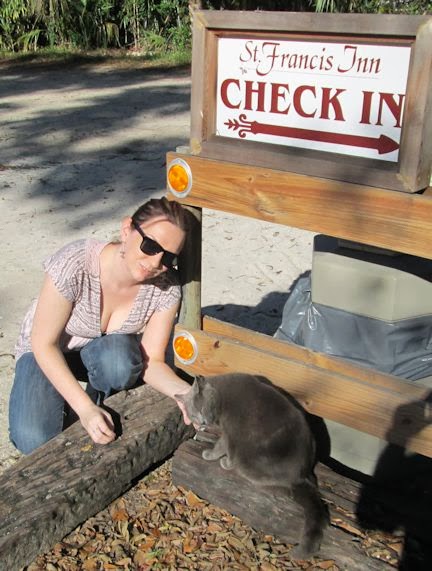 And saving the very most important thing for last… ZEKE! The St. Francis has a kitty! I kept an eye out for him every time we were coming or going, but only spotted him once on the first day. I was pretty sad to leave with no quality kitty time, but then guess who I spotted out in the parking lot right when it was time to leave??