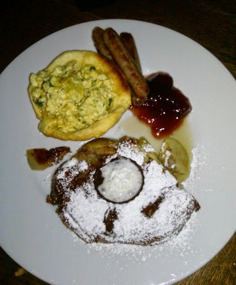 The breakfast menu varies, but this morning the main event was Granny Smith apple pancakes topped with powdered sugar, maple syrup, and a cream-filled Belgian chocolate. The pancakes came with scrambled eggs with cheese and parsley in a homemade biscuit bowl, and pan grilled pork sausages. It was the perfect mix of sweet and savory flavors, and again totally huge! (I think I made it through a little more than half before admitting defeat!) You can choose to eat breakfast outside on one of the verandas if the weather is nice, but since it was still rainy I was quite happy to hang out in my room!
